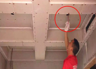 未做加强处理的吊顶与墙体交接处易开裂,龙骨与墙体之间轻微颤动便可有噪音产生。