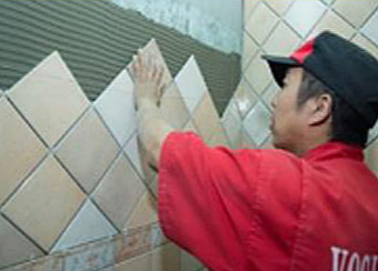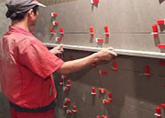 常规墙面铺贴的瓷砖未使用调平器,完全靠工人的经验找平,平整度很难保证,且易空鼓。