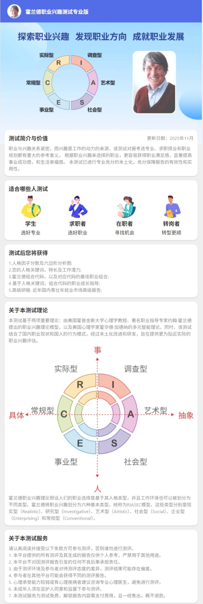 霍兰德职业性格兴趣专业测试,快来给小孩测试一下吧