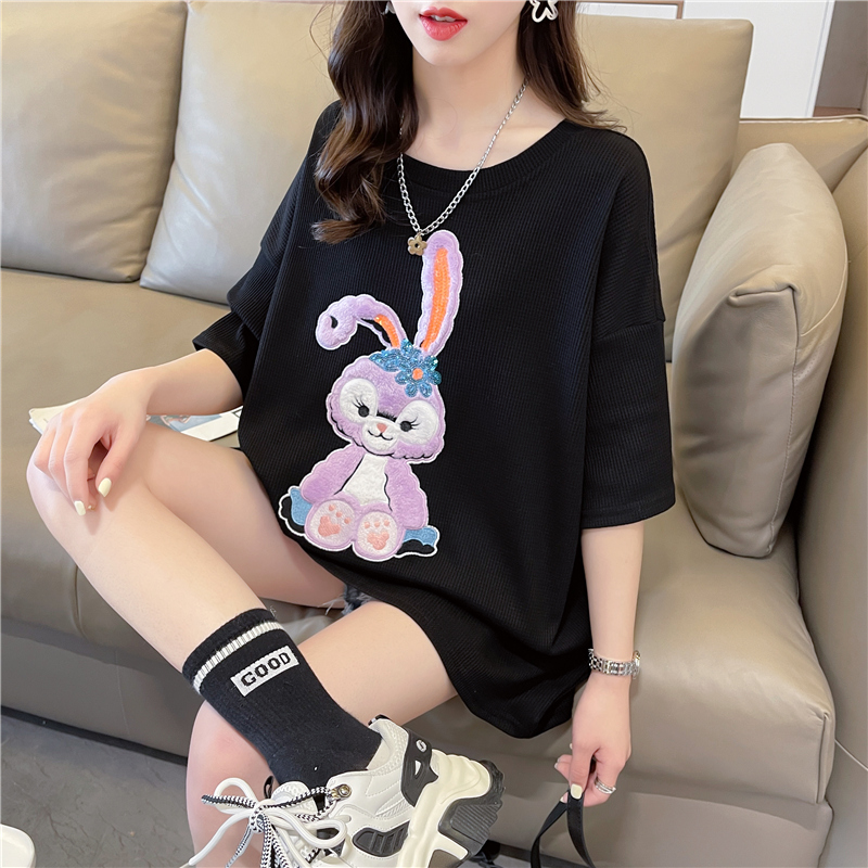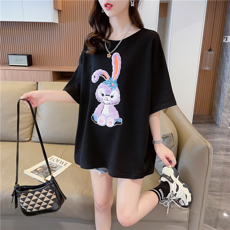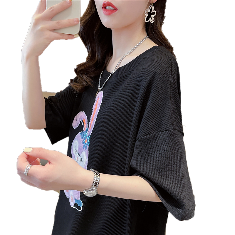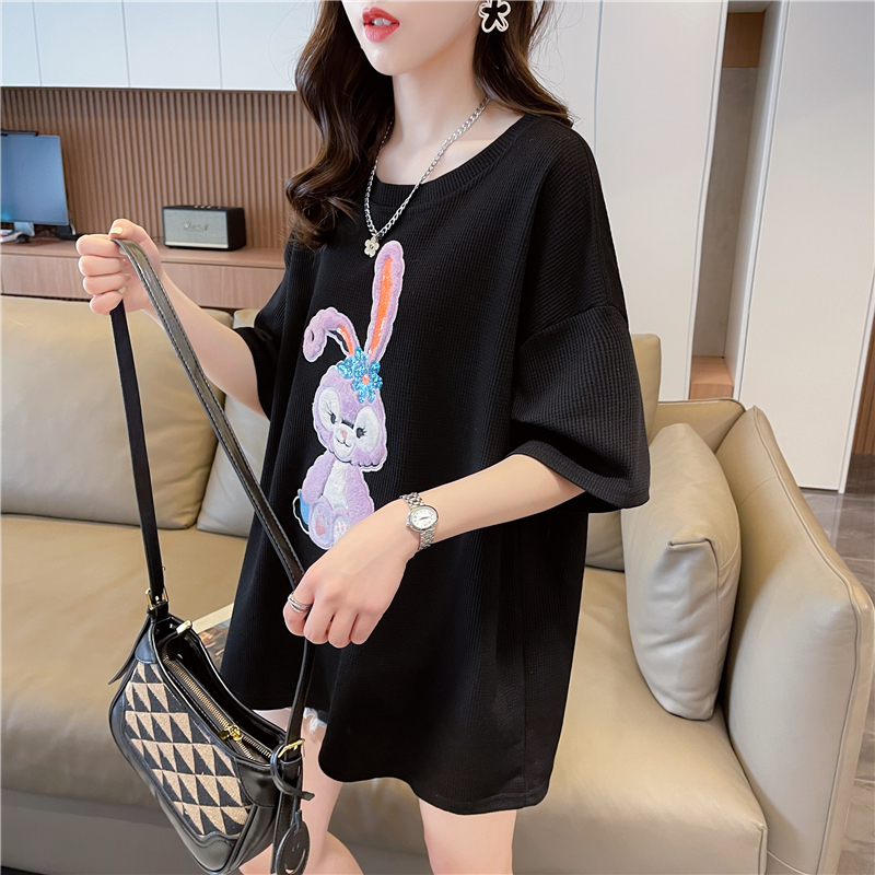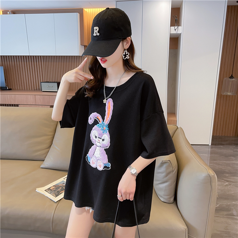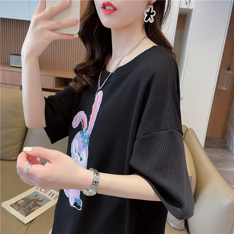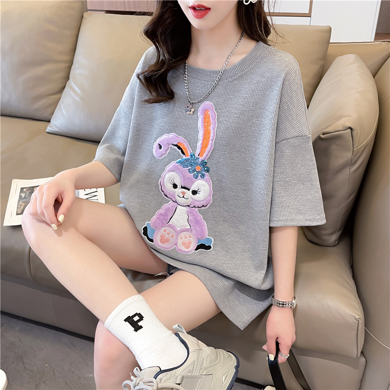 首发实拍 仿棉华夫格夏季短袖T恤女爆款减龄小清新慵懒风上衣/衣帽箱包鞋