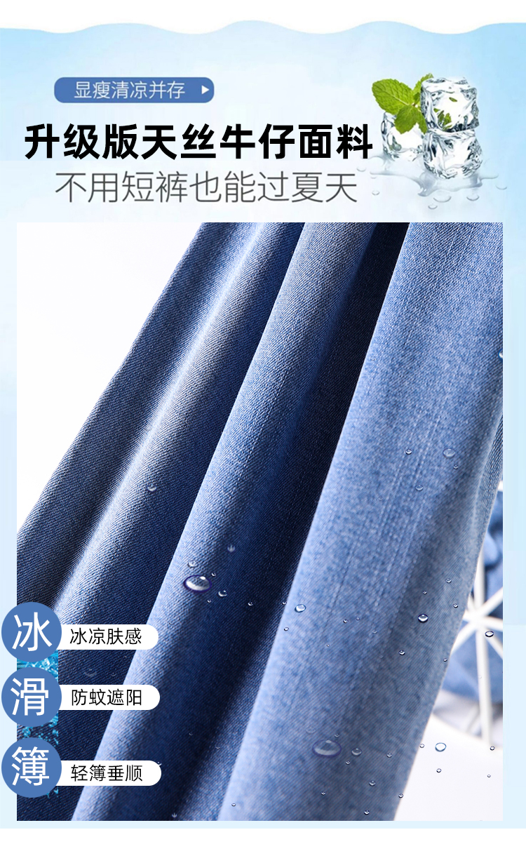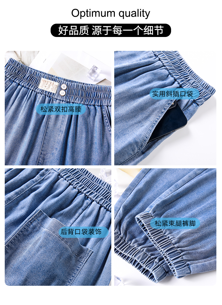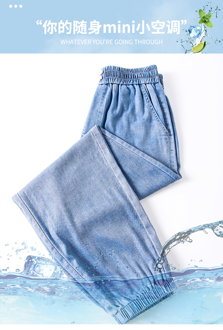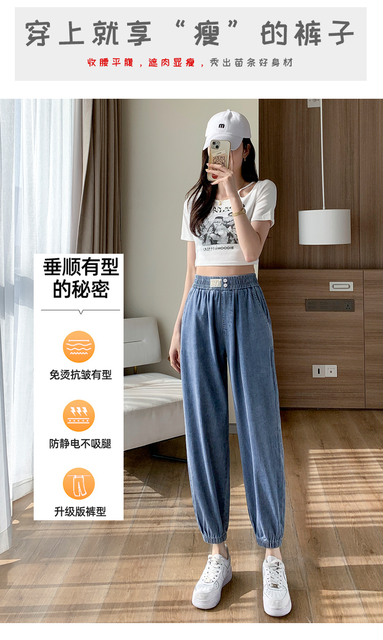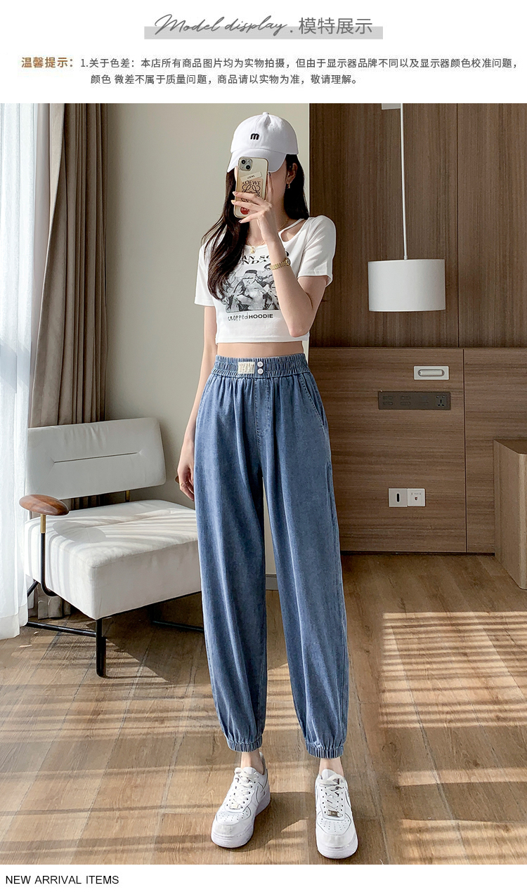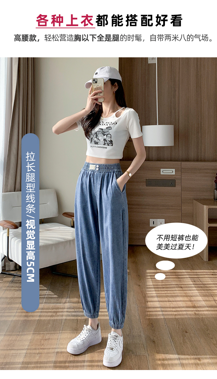 实拍天丝哈伦牛仔裤女2023夏季薄款高腰束脚宽松直筒小个子休闲裤