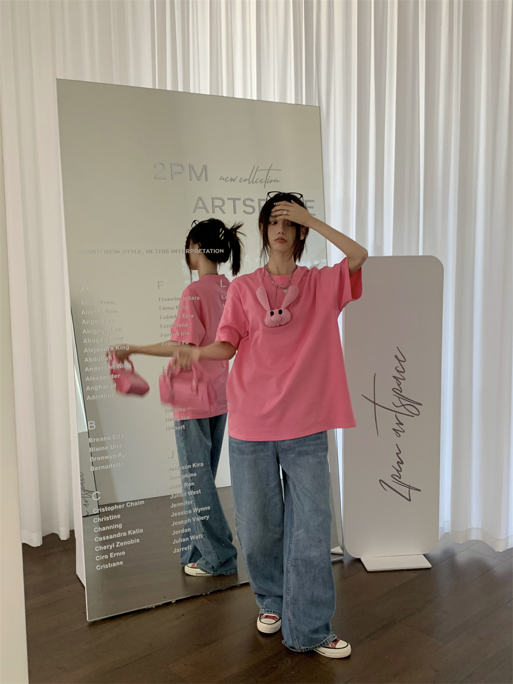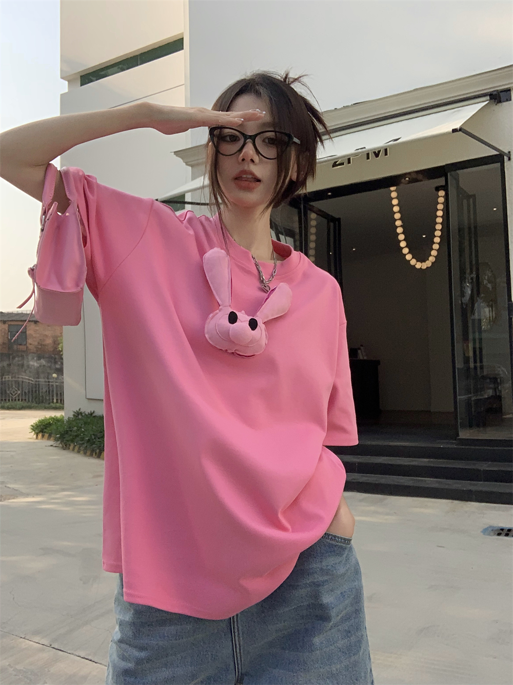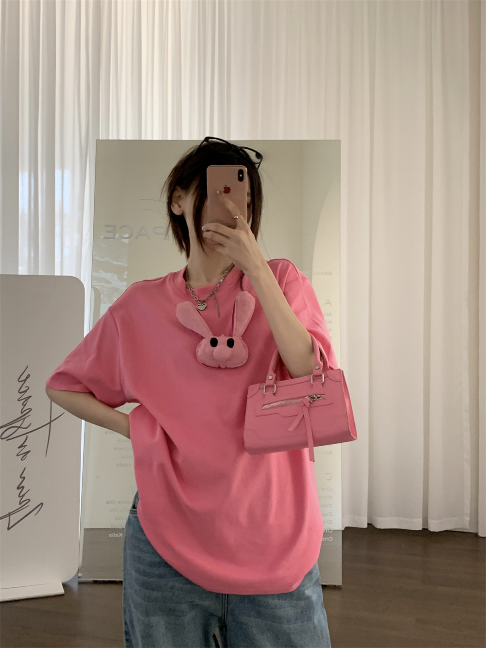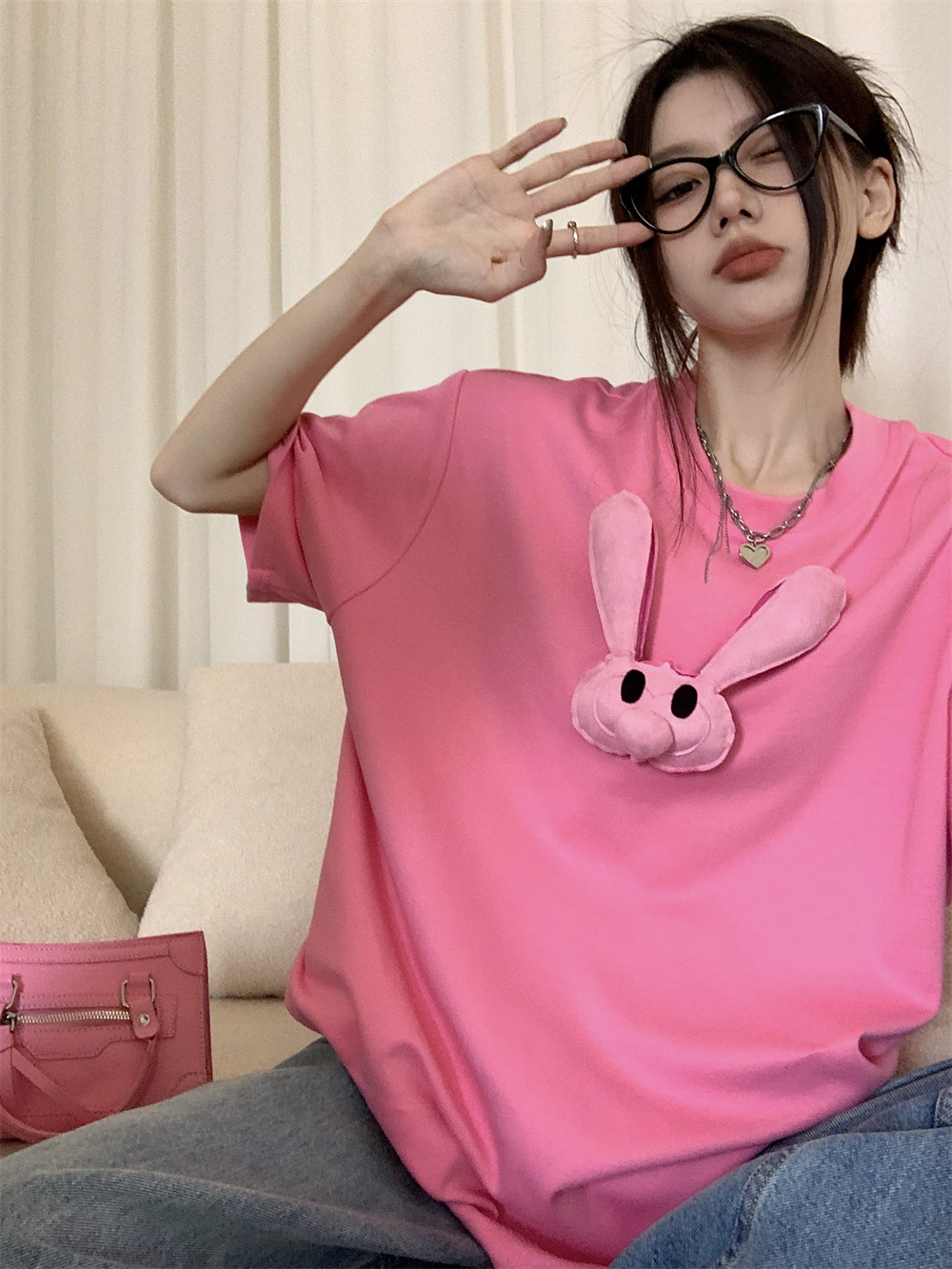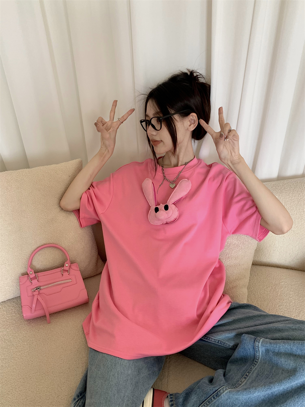 实拍实价~ 韩版辣妹露脐性感修身显瘦短款兔子圆领短袖长短款T恤