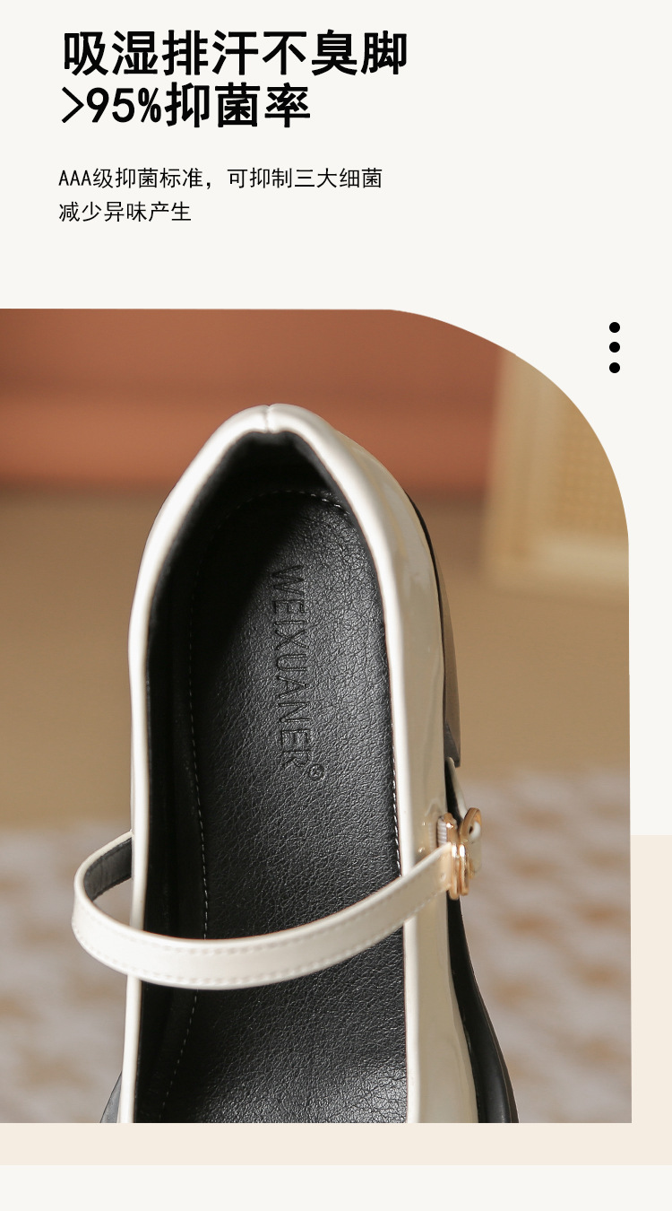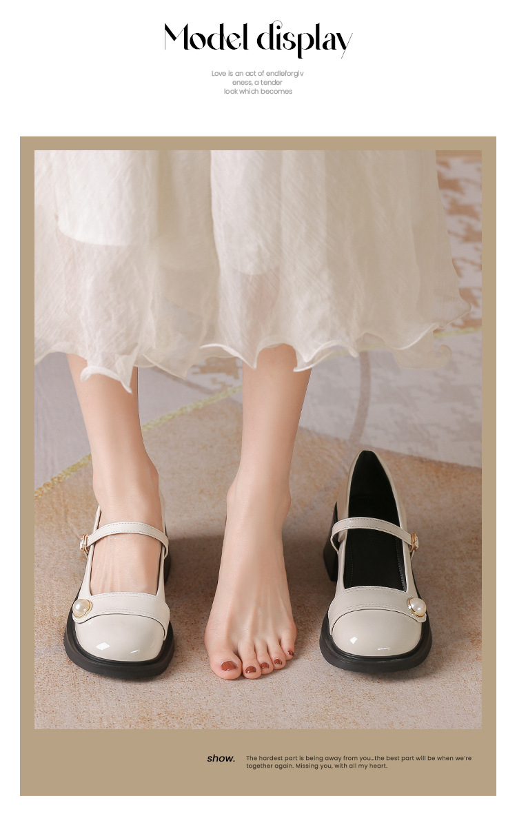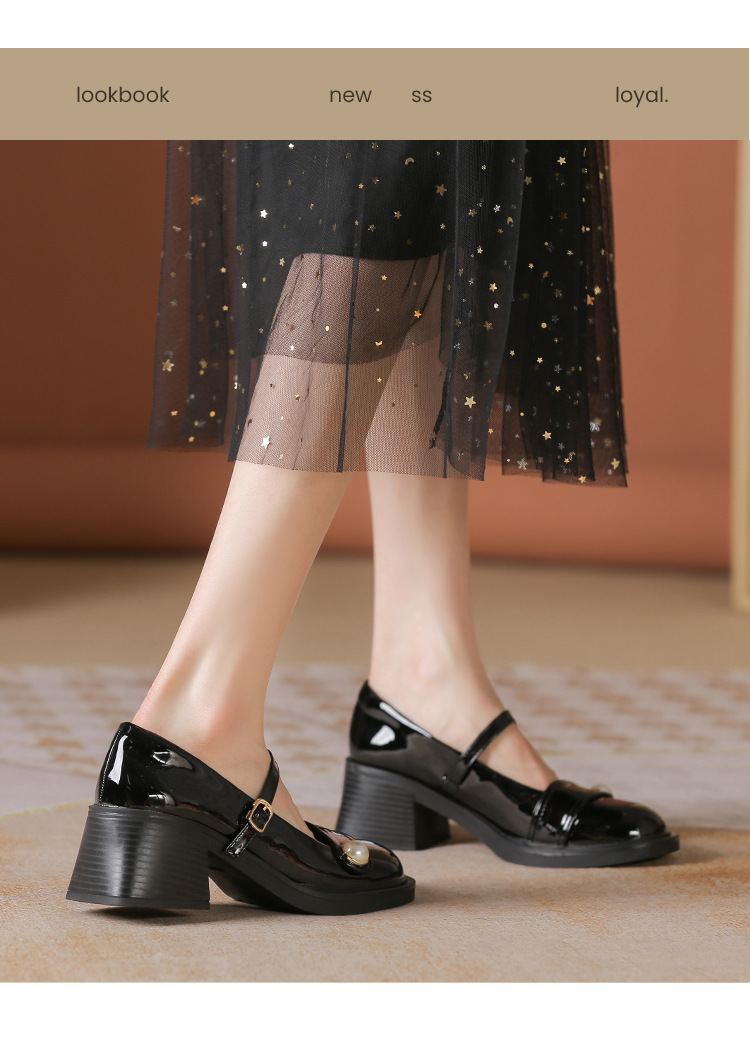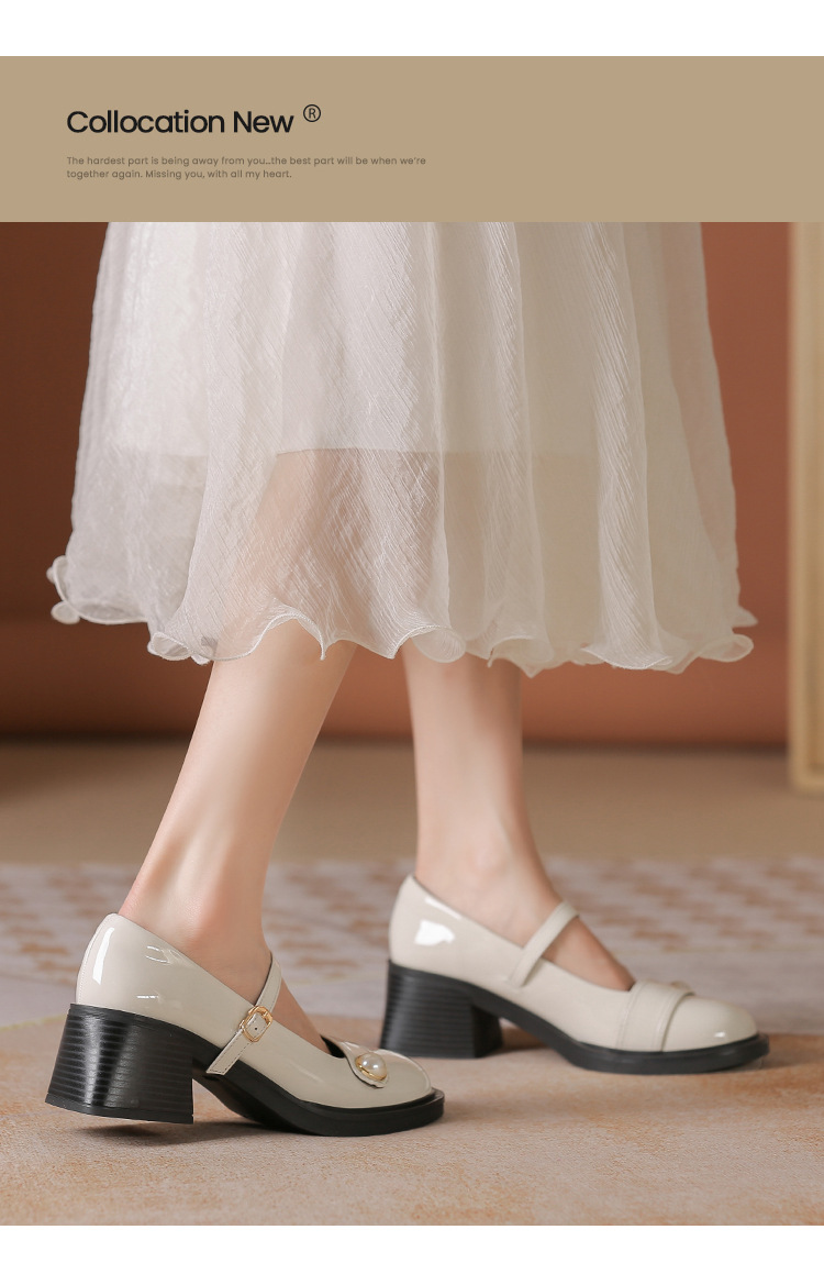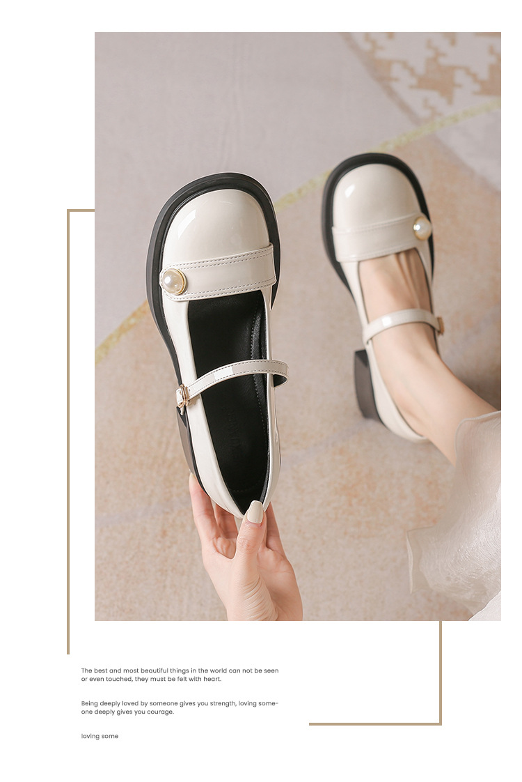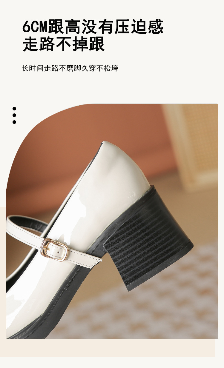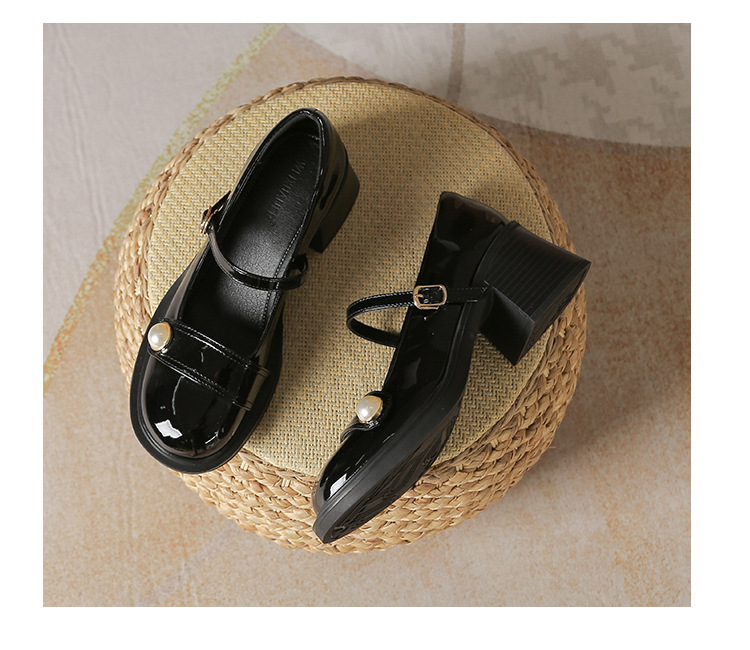 红色高跟鞋2023新款圆头甜美珍珠一字扣玛丽珍单鞋法式粗跟小皮鞋